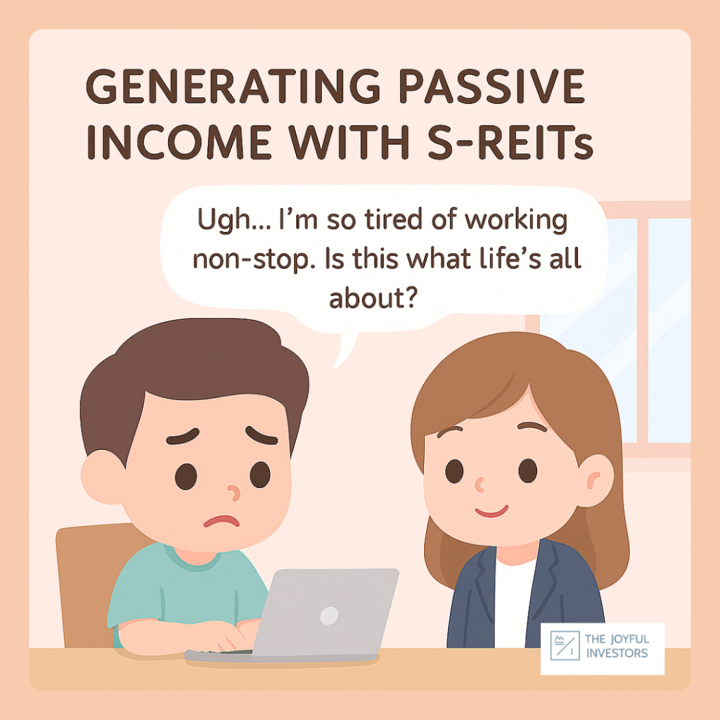 Generating Passive Income With S-REITs Post published:July 16, 2025 Ready to Take the Next Step in Your REIT Journey? Head on to this link to learn more about our upcoming in-person workshops on REITs! See It in Action A Story of Strategy, Timing and PatienceBelieve in Passive Income.Don’t be discouraged by a Small Start Recommended Reads How To Generate Passive Income With Dividends In Singapore?FIRE Movement Explained: How To Retire Early Without Financial WorriesWhat Is The Best Investing Strategy? | Does It Exist? (Part 1)How Should I Choose My Investing Strategy? | Find Out The Thought Process (Part 2) Stay in the know with the latest market insights * indicates required First Name Email Address Follow Us On YouTube Explore Our Workshops Join Our Community You Might Also Like Should You Invest In China Amid The CCP Crackdown And Market Crash? August 3, 2021 S&P 500 Breached Historic 5,000 Level – Rally or Retreat? March 4, 2024 Key Red Flags That You Should Know For S-REITs Investments March 24, 2023 Leave a Reply Cancel replyCommentEnter your name or username to comment Enter your email address to comment Enter your website URL (optional) Save my name, email, and website in this browser for the next time I comment.